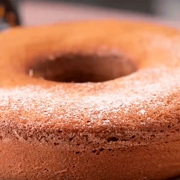 Misture bem e despeje em uma forma redonda com furo central (cerca de 21 cm de diâmetro) untada levemente com óleo.