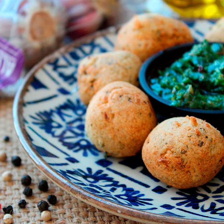 Em um processador, bata todos os ingredientes. Com o auxilio de uma colher, modele os bolinhos de falafel.