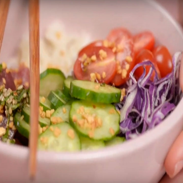 Em um bowl, organize os ingredientes e polvilhe o alho frito.